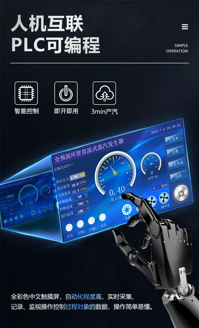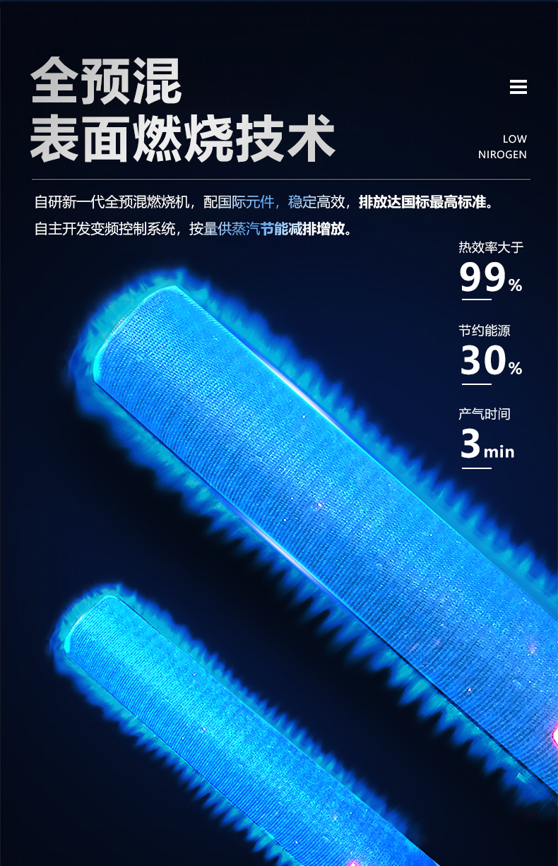 蒸汽量:50kg至6T,無內(nèi)膽,水容積<29L、產(chǎn)汽快、免報(bào)檢,低氮燃燒NOx排放<22mg/m3,符合環(huán)保要求,310S不銹鋼過流件直流環(huán)管結(jié)構(gòu),達(dá)到衛(wèi)生級別,溫度、壓力、可定制,更多參數(shù)可致電15323300918...