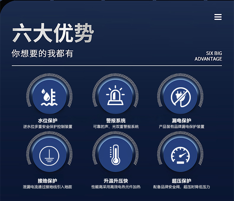 積木式自由組合,按需供氣;蒸汽量:6kg至6T;幾何容積小于30L,無需報檢;獨特汽水分離器蒸汽干度高達99%;溫度、壓力、可定制,更多參數可致電15323300918...